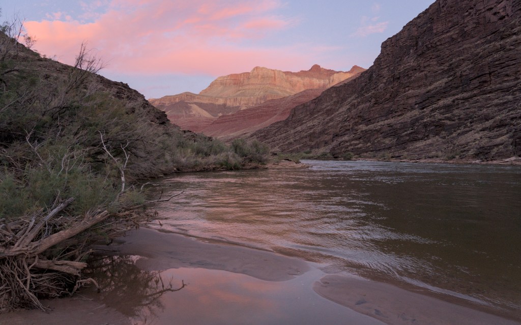 C’était ma première expérience dans le Grand Canyon. La plus grande surprise pour moi a été le faible nombre de personnes que nous avons rencontrées sur la rivière en raison des permis très limités (le nombre de permis délivrés n’a pas augmenté depuis les années 1990). Aussi, bon et mauvais côté, les températures de l’eau étaient aux alentours de 60 degrés, contre 50-52 degrés habituellement, donc il était raisonnablement confortable d’être dans l’eau. Cela est dû au fait que les niveaux d’eau du barrage de Glen Canyon sont très bas en raison de la sécheresse historique. Je suppose que cela aurait été beaucoup plus froid au printemps, après la fonte des neiges hivernale – donc je suis content que nous ayons décidé d’y aller à l’automne.